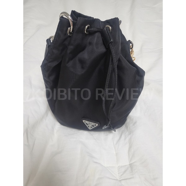 Prada(ÇÁ¶ó´Ù) 1NA369 ºí·¢ Ä÷¯ ÆÐºê¸¯ »ï°¢ ·Î°í Àå½Ä ¸®³ªÀÏ·Ð ¹öŶ ÆÄ¿ìÄ¡¹é [¾Ð±¸Á¤Á¡]